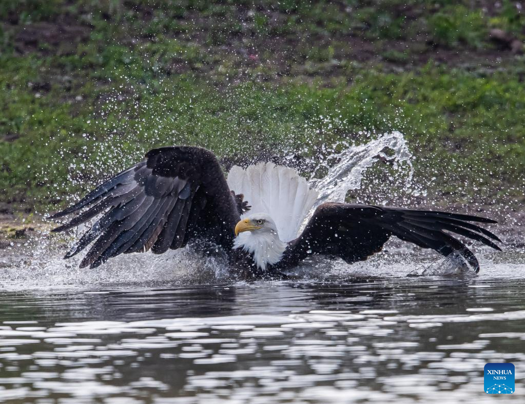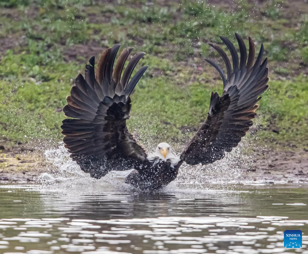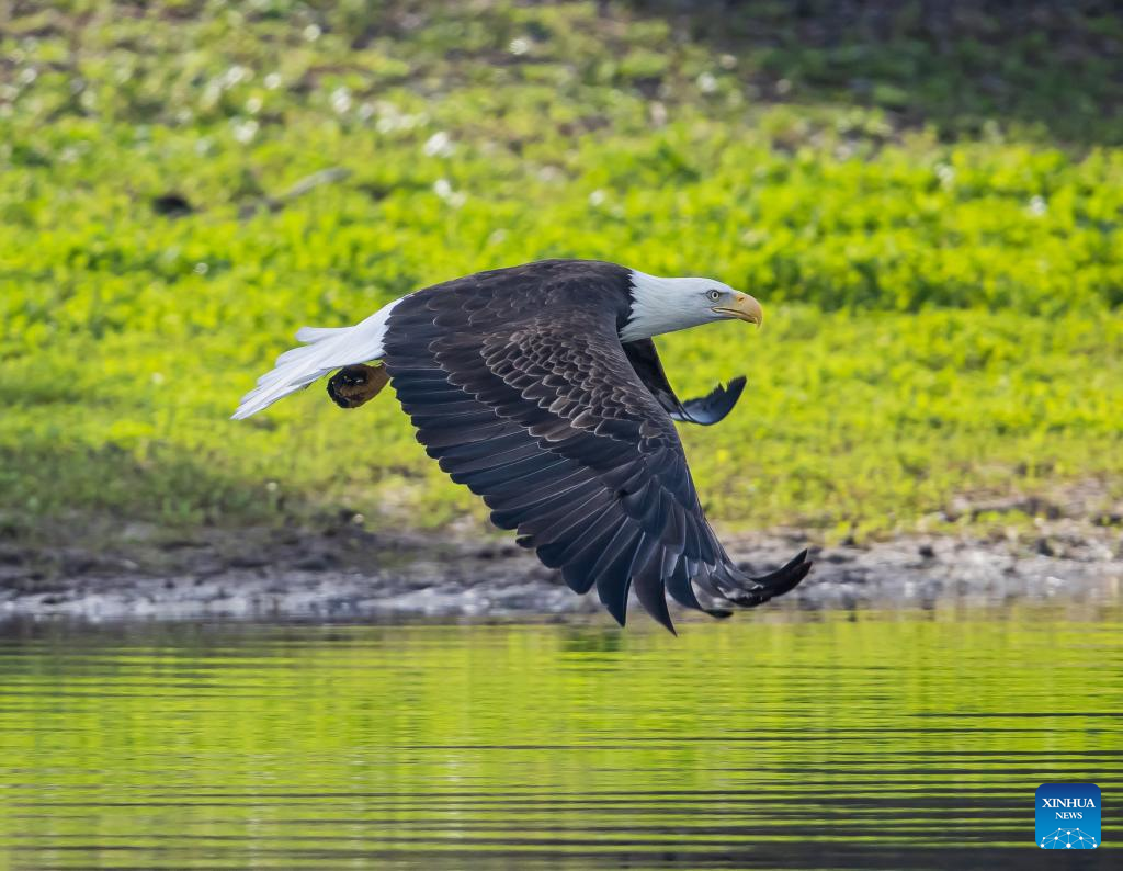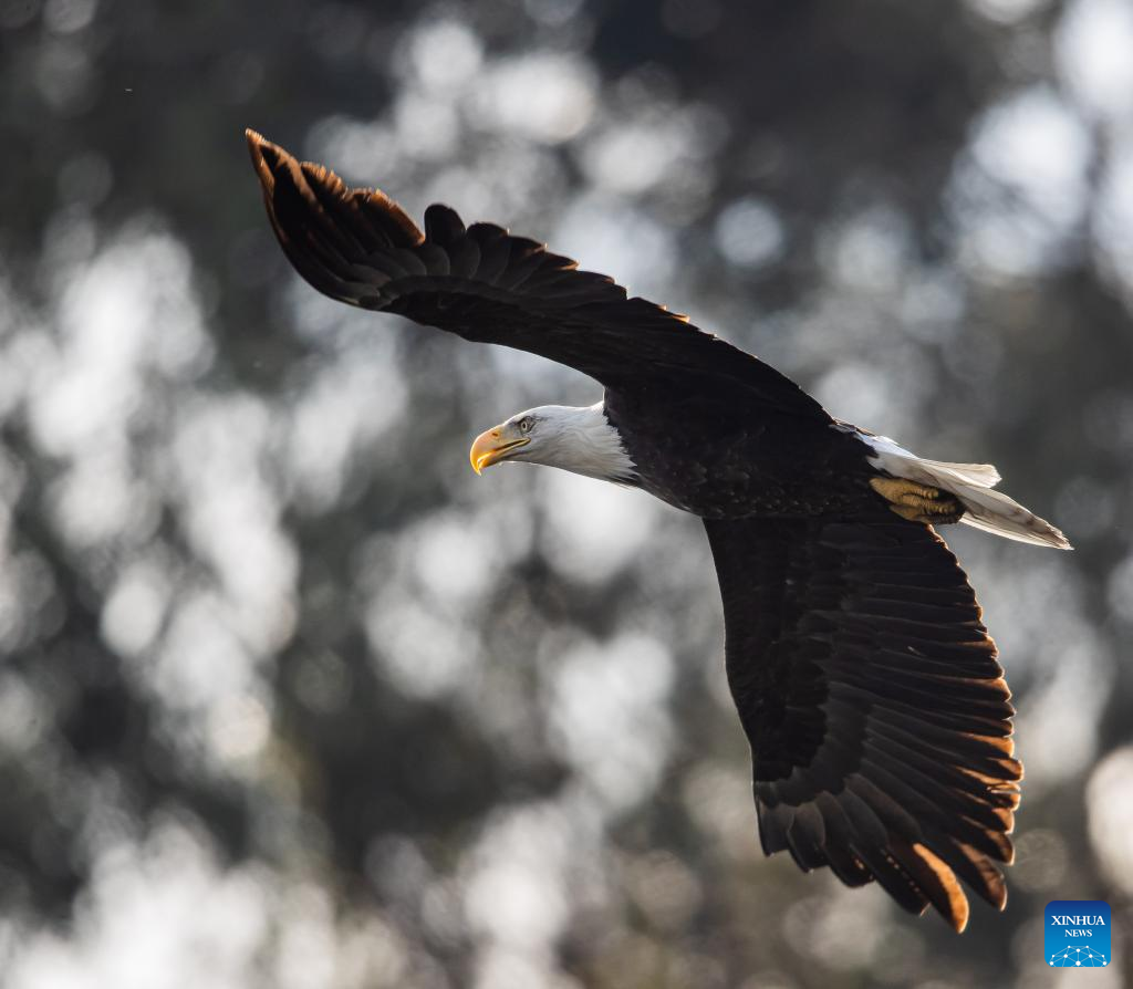 Photo taken on Jan. 11, 2022 shows a bald eagle at a park in Milpitas, California, the United States. (Photo by Dong Xudong/Xinhua)