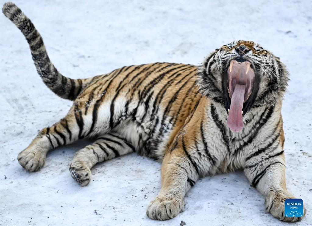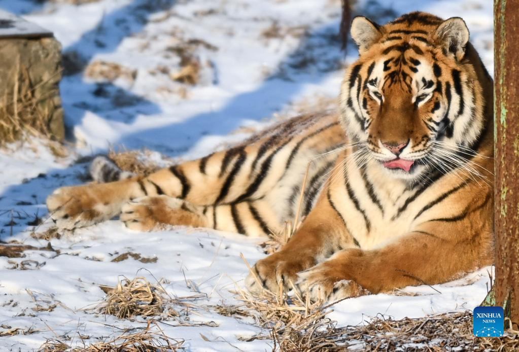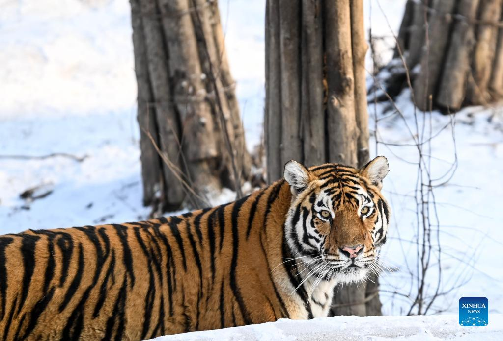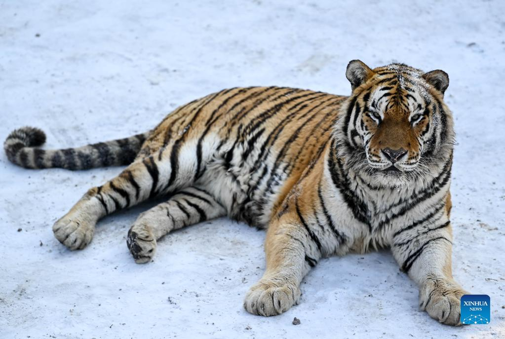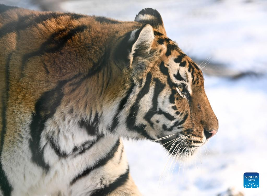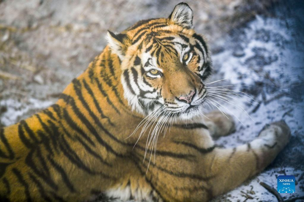 A Siberian tiger is seen at the Siberian Tiger Park in Changchun City, capital of northeast China's Jilin Province, Jan. 13, 2022. (Xinhua/Yan Linyun)