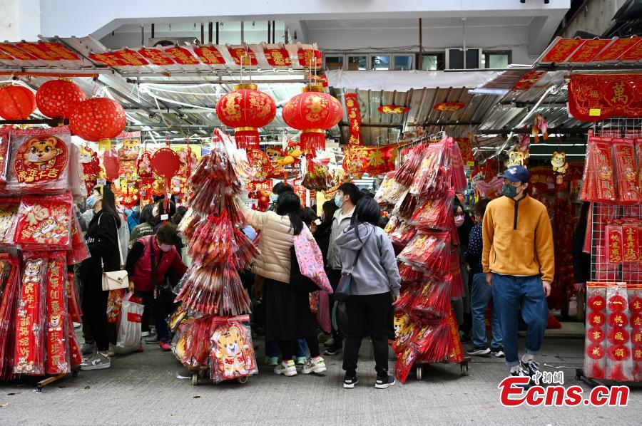 Citizens buy new year decorations in Sham Shui Po District, Hong Kong. (Photo: China News Service/Li Zhihua)