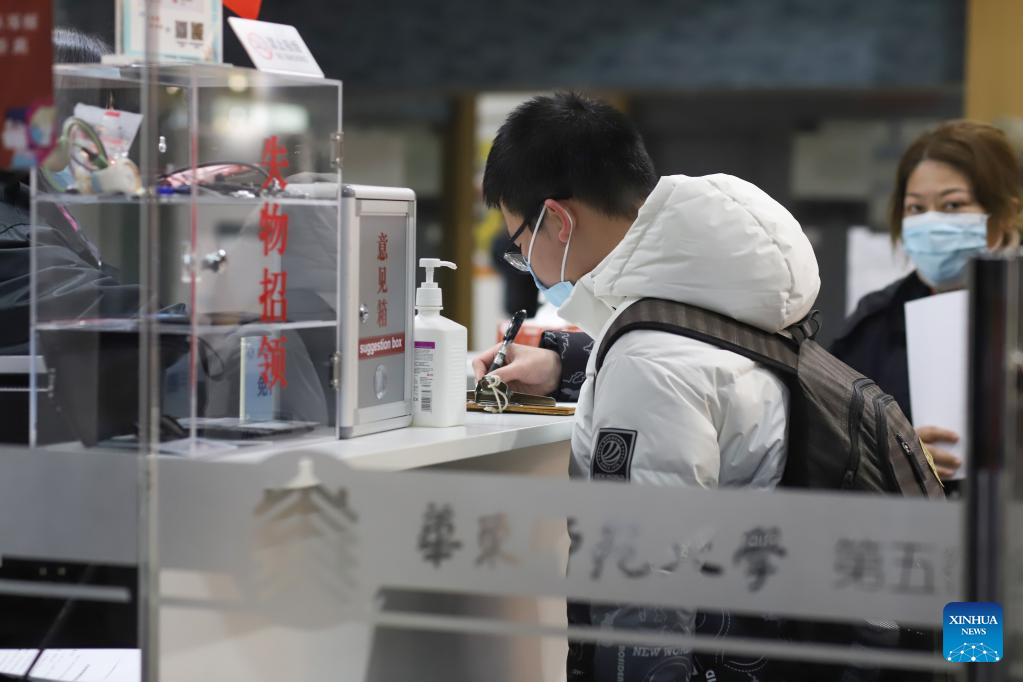 A student registers his information in East China Normal University in Shanghai, east China, Jan. 14, 2022.