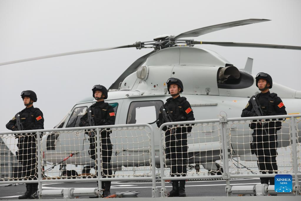 Special operation soldiers line up at a military port in Zhanjiang City, south China's Guangdong Province, Jan. 15, 2022. The 40th fleet of the Chinese People's Liberation Army (PLA) Navy set out from a military port in the city of Zhanjiang on Saturday to conduct an escort mission in the Gulf of Aden and the waters off Somalia. (Photo by Jiang Xiaowei/Xinhua)