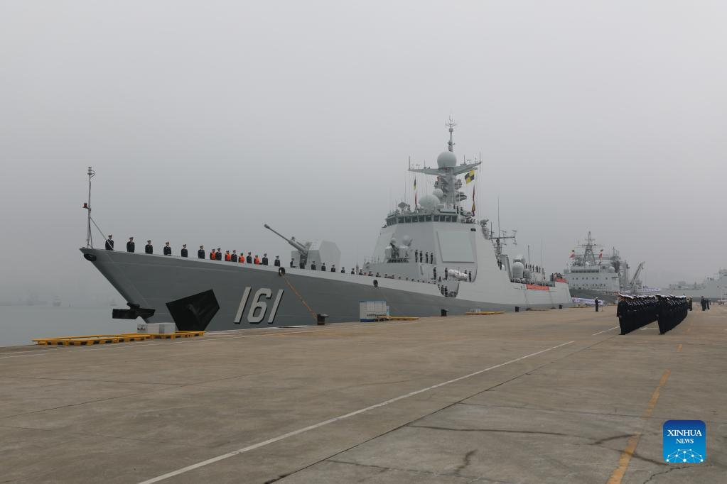 Guided-missile destroyer Hohhot is seen at a military port in Zhanjiang City, south China's Guangdong Province, Jan. 15, 2022. The 40th fleet of the Chinese People's Liberation Army (PLA) Navy set out from a military port in the city of Zhanjiang on Saturday to conduct an escort mission in the Gulf of Aden and the waters off Somalia. (Photo by Chen Runchu/Xinhua)
