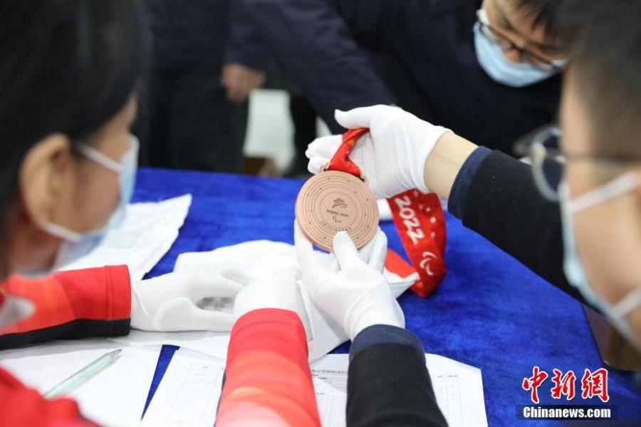 Photo shows the Beijing 2022 Winter Olympics medal, named “Tongxin”, January 14, 2022. (Photo provided by Shanghai Minting Corporation)