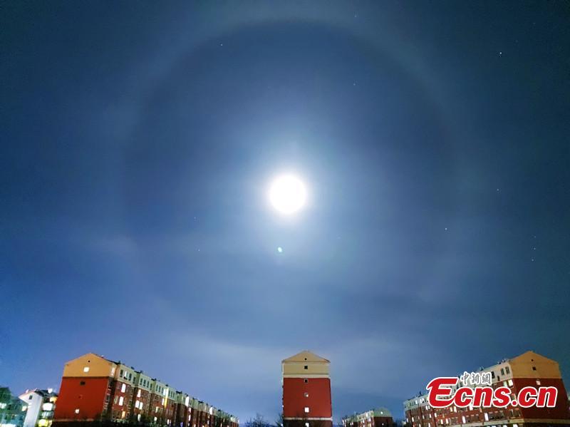 Lunar halo appears over Genhe city, China's pole of cold, in Inner Mongolia Autonomous Region, Jan.16, 2022. (Photo:China News Service/Liu Liping)