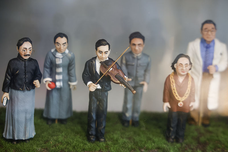 Photo taken on Dec. 24, 2021, shows the dough figurines of a series of historical celebrities made by Lang Jiaziyu. (People’s Daily Online/Peng Yukai)