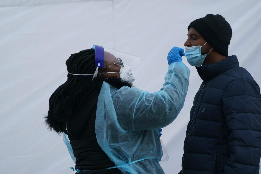 A medical worker takes a nasal swab sample from a man for COVID-19 testing in Washington, D.C., the United States, on Jan. 13, 2022. (Photo by Ting Shen/Xinhua)
