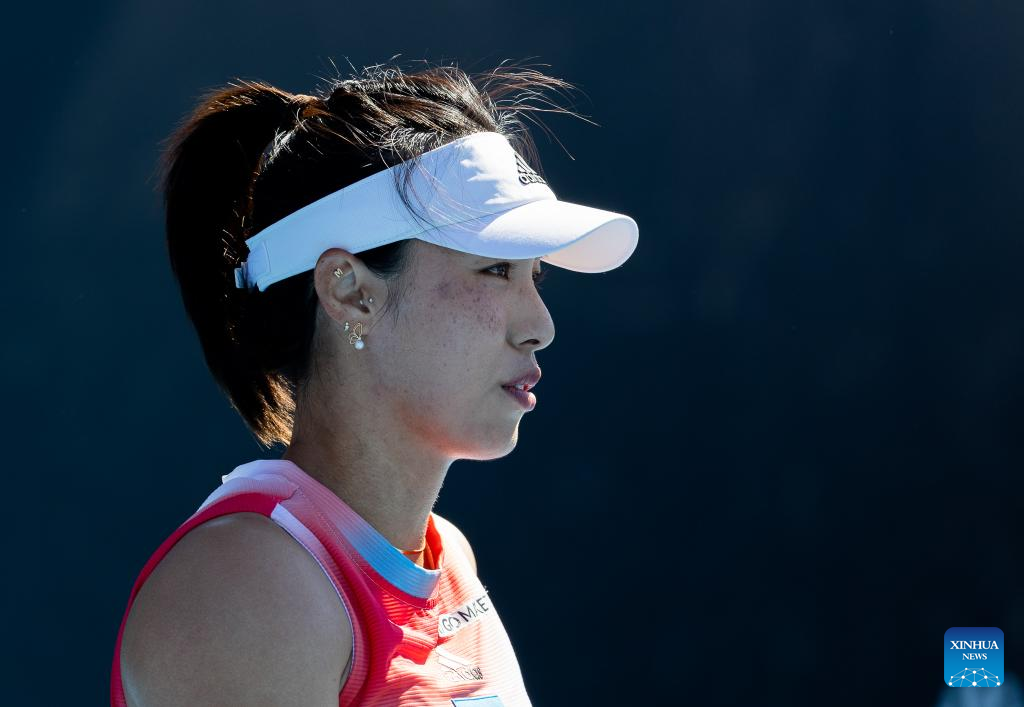 Wang Qiang of China hits a return during the Women's Singles second round match against Alison Van Uytvanck of Belgium at Australian Open 2022 in Melbourne, Australia, Jan. 19, 2022. (Photo by Hu Jingchen/Xinhua)
