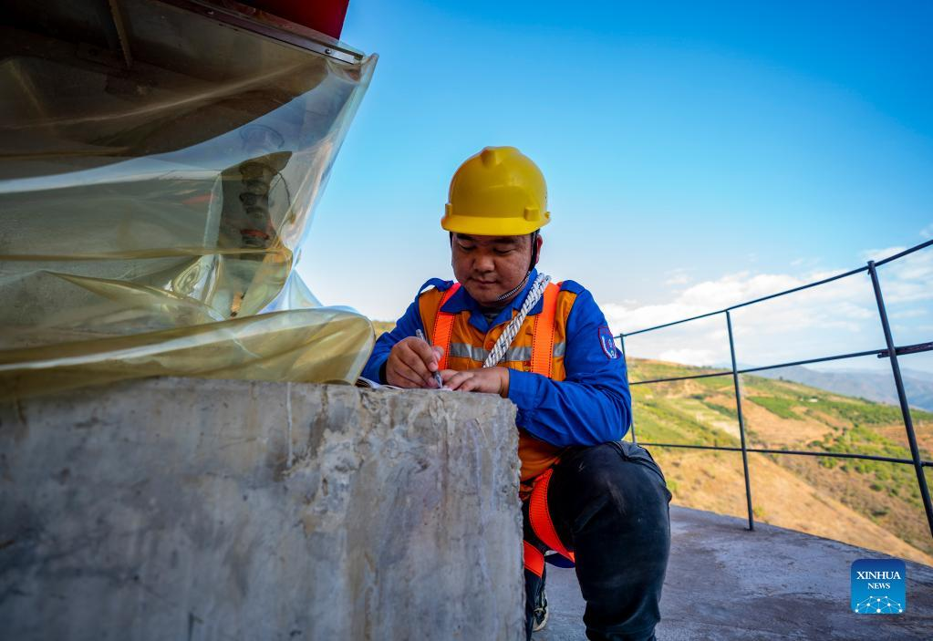 Shi Pengbin fills in the checking record of the Yuanjiang major bridge over the Yuanjiang River in southwest China's Yunnan Province, Jan. 18, 2022. Shi Pengbin, 28, is a technician responsible for maintaining the Yuanjiang major bridge, a key bridge of the China-Laos Railway project. Spanning a full length of 832.2 meters, the Yuanjiang bridge uses six bridge piers with the No.3 bridge pier, the highest pier, standing at 154 meters. Shi, who started working for the construction of the China-Laos Railway from April 2020, even postponed his wedding to guarantee on-time completion of the bridge. After the operation of China-Laos Railway, Shi's work includes checking the bridge in high places during the day, and repairing the bridge floor during the break time for rail service at night. During this year's Spring Festival holiday, Shi and his colleagues will stick to their posts to secure the railway transportation. (Xinhua/Chen Xinbo)