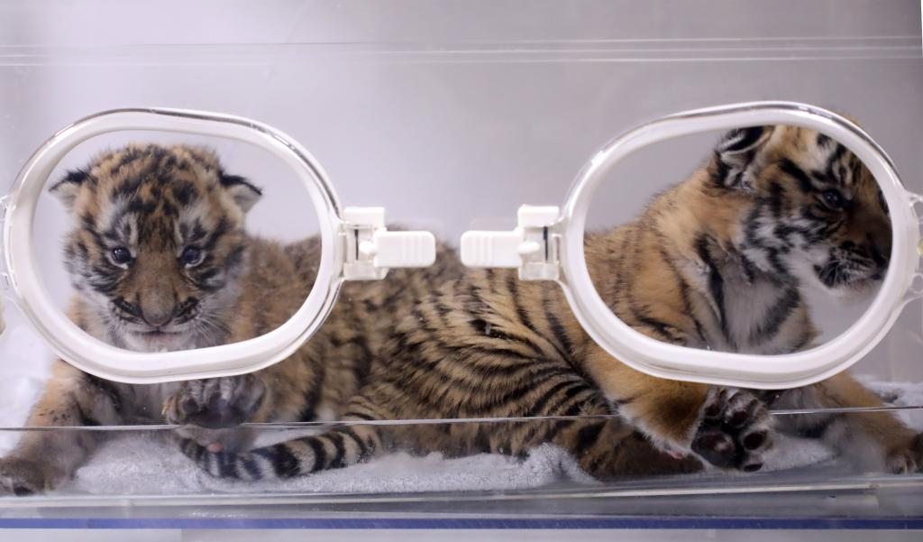 Twin cubs of south China tiger born on Dec. 31, 2021 are seen at the research base of south China tiger breeding in Shaoguan City of south China's Guangdong Province, Jan. 20, 2022. Mengmeng, a south China tiger, gave birth to twin cubs on Dec. 31, 2021 after its two cubs Yuanyuan and Qingqing were born in March and September 2021. (Xinhua/Huang Guobao)