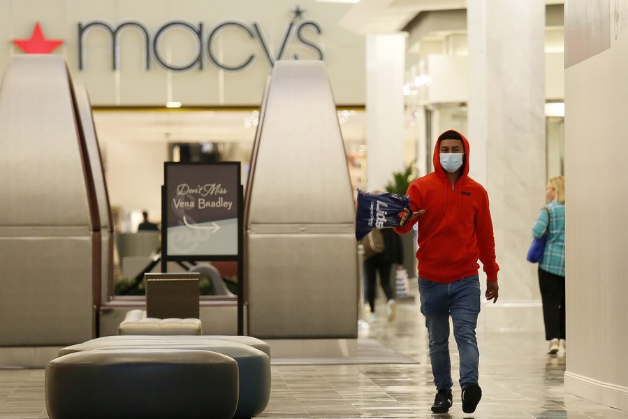 A man wearing a face mask is seen in a shopping center in New Orleans, Louisiana, the United States, Jan. 11, 2022. (Photo by Lan Wei/Xinhua)