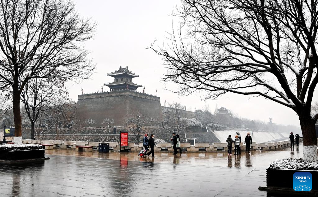 Citizens visit the ancient city wall in Xi'an, northwest China's Shaanxi Province, Jan. 23, 2022. (Xinhua/Tao Ming)