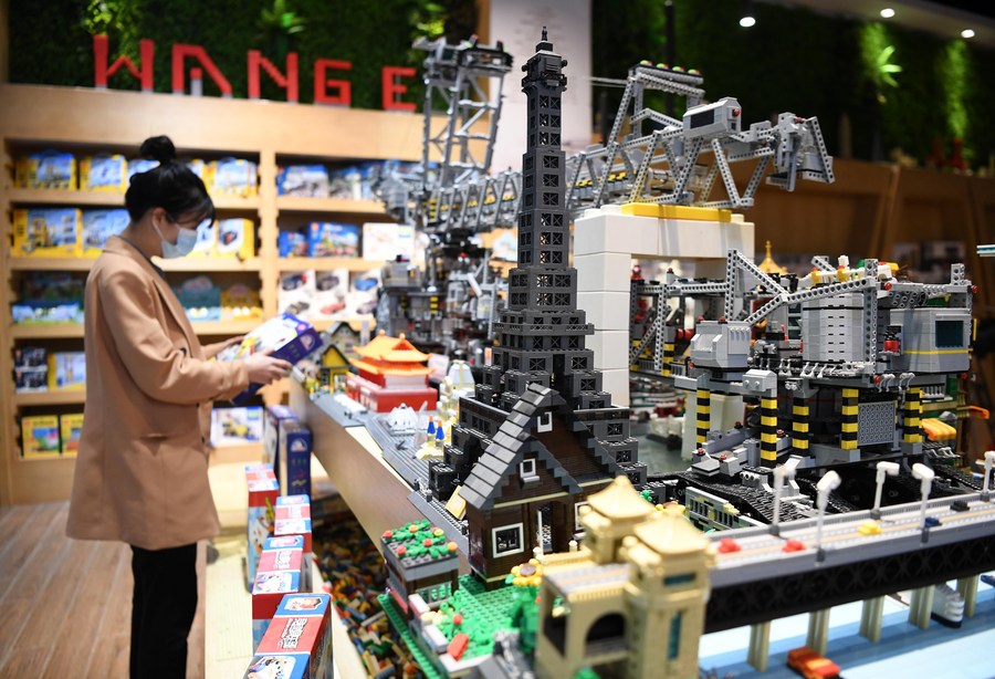 Toys are displayed at a toy cultural and tourism industrial park in Chenghai District of Shantou City, south China's Guangdong Province, Dec. 1, 2021. (Xinhua/Deng Hua)
