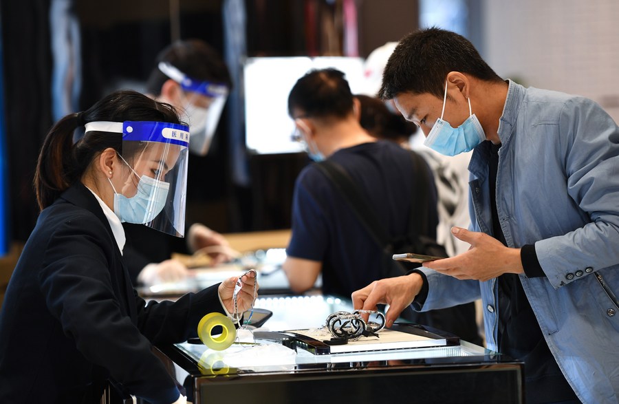 A customer views a watch in a duty-free shop in Haikou, capital of south China's Hainan Province, Jan. 3, 2022. (Xinhua/Guo Cheng)