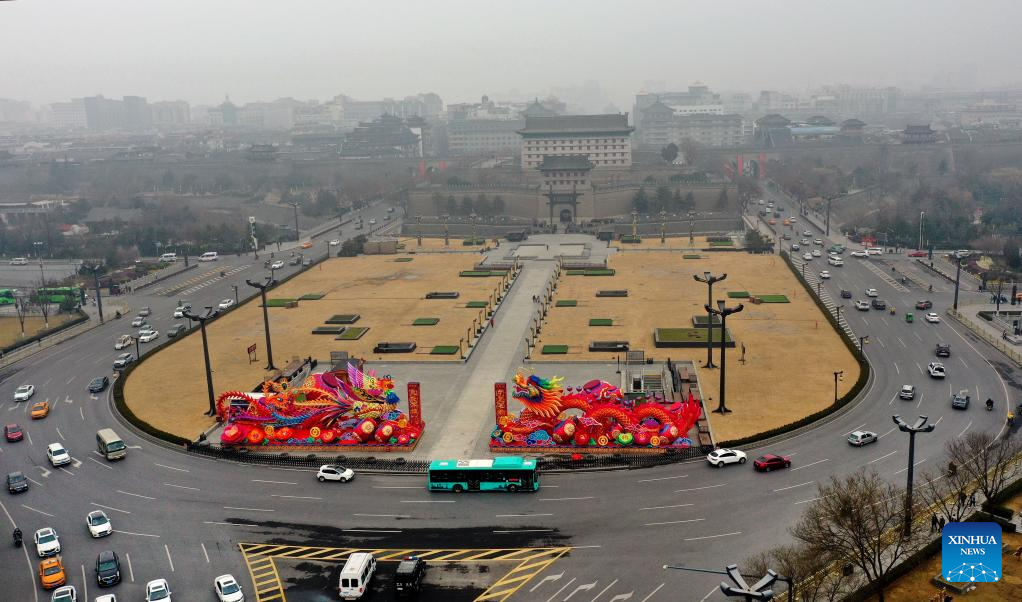 Aerial photo taken on Jan. 25, 2022 shows a view of the surrounding area of the Yongning Gate in Xi'an, northwest China's Shaanxi Province. Xi'an cleared all areas classified as high and medium-risk for COVID-19 on Jan. 24. (Xinhua/Tao Ming)
