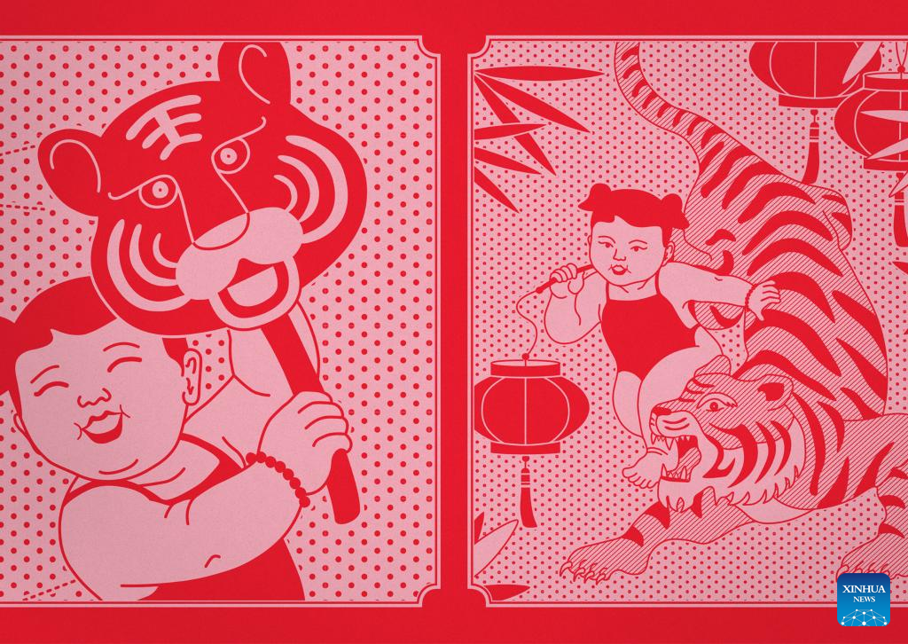 Picture shows the illustration of the 2022 Year of the Tiger stamps published by New Zealand Post. New Zealand Post has published the 2022 Year of the Tiger stamps to celebrate the upcoming Chinese New Year. It is the 26th consecutive year that New Zealand has published Chinese zodiac stamps. (NZ Post/Handout via Xinhua)