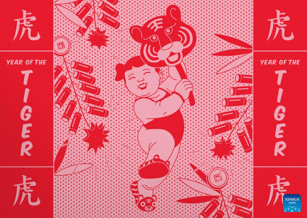 Picture shows the illustration of the 2022 Year of the Tiger stamps published by New Zealand Post. New Zealand Post has published the 2022 Year of the Tiger stamps to celebrate the upcoming Chinese New Year. It is the 26th consecutive year that New Zealand has published Chinese zodiac stamps. (NZ Post/Handout via Xinhua)