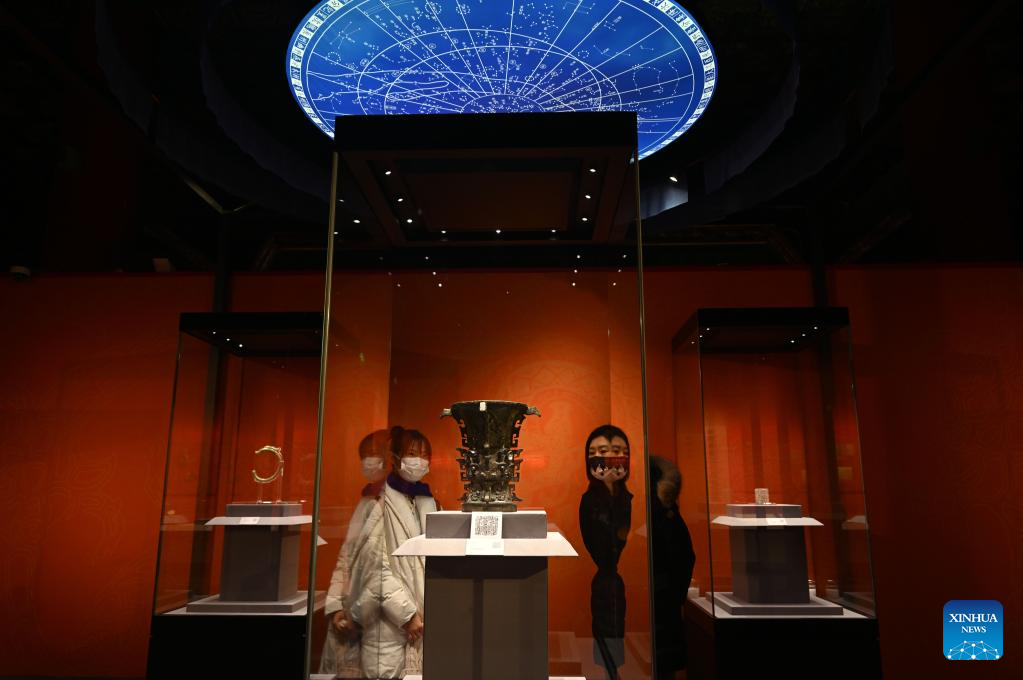 Visitors view an exhibit during an exhibition held at the Palace Museum in Beijing, capital of China, Jan. 25, 2022.(Xinhua/Jin Liangkuai)