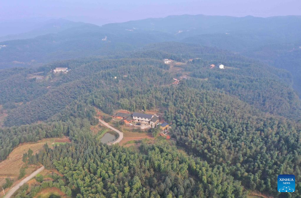 Aerial photo taken on Jan. 18, 2022 shows a view of Zhuhai Village of Baijie Town of Naxi District, Luzhou, southwest China's Sichuan Province. Years ago, Wu Qiuyue used to work in an electronics factory in south China's Shenzhen. Later, in order to take care of her parents and daughter, she and her husband Huang Zhongping decided to return to her hometown to start a business together. (Xinhua/Liu Kun)