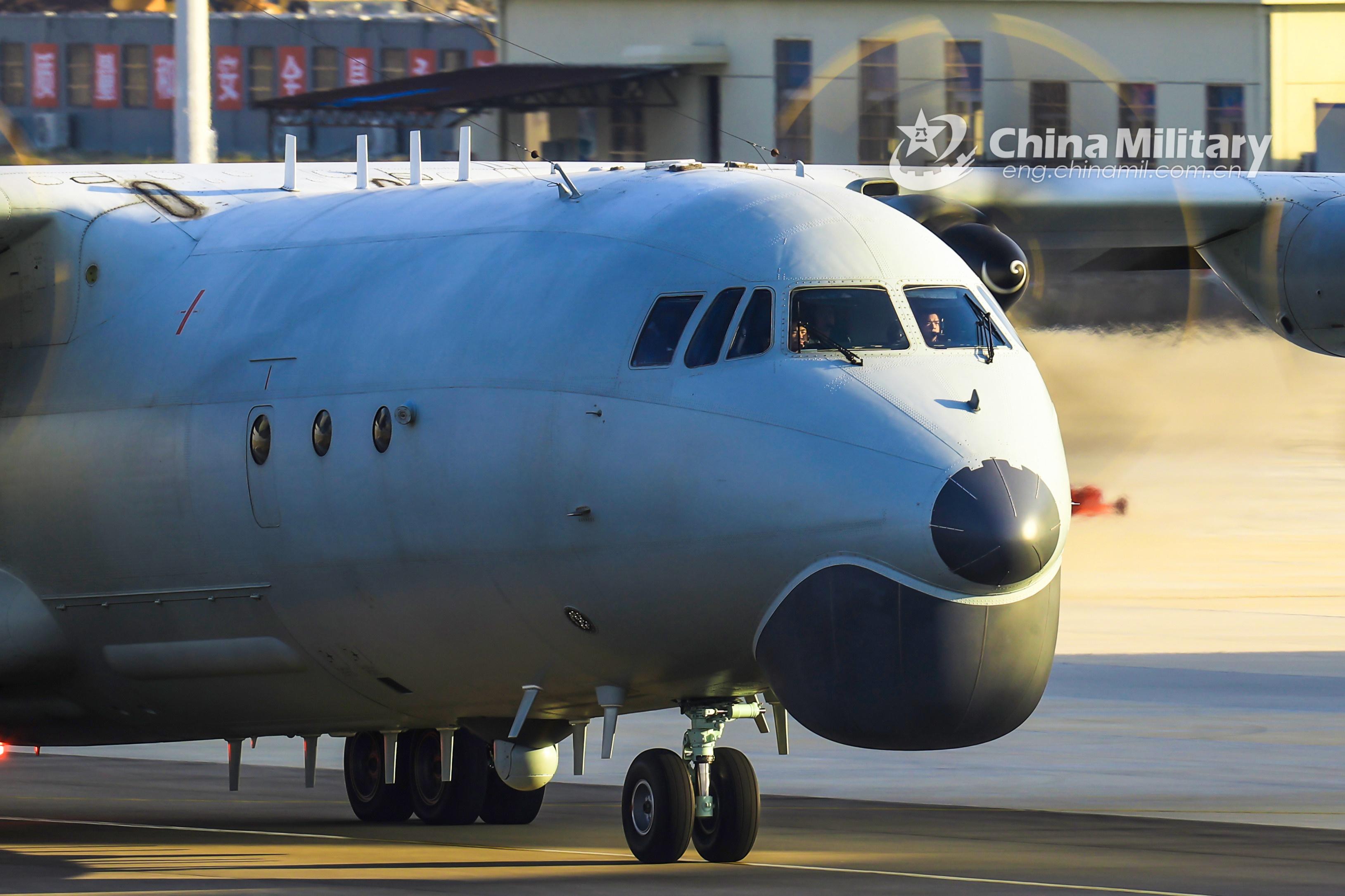 An anti-submarine aircraft attached to a naval aviation division under the PLA Eastern Theater Command taxis on the tarmac during a combat flight training exercise in the middle of January, 2022, which is attended by multiple types of aircraft. (eng.chinamil.com.cn/Photo by Guo Yunbo, Liu Yufan, Wang Zhengdi and Zhang Dingyi)