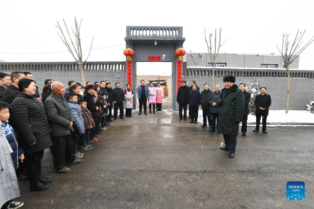 Chinese President Xi Jinping, also general secretary of the Communist Party of China (CPC) Central Committee and chairman of the Central Military Commission, talks with villagers in Duancun Village, Sengnian Township of Fenxi County, north China's Shanxi Province, Jan. 26, 2022. Xi on Wednesday began his visit to Shanxi Province ahead of the Spring Festival, or the Chinese New Year. (Xinhua/Xie Huanchi)