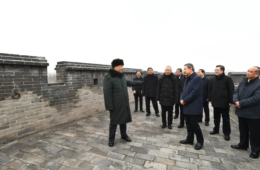 Chinese President Xi Jinping, also general secretary of the Communist Party of China (CPC) Central Committee and chairman of the Central Military Commission, tours the ancient city walls in Pingyao, north China's Shanxi Province, Jan. 27, 2022. Xi extended Spring Festival greetings to all Chinese people during his visit to Shanxi Province from Wednesday to Thursday. (Xinhua/Xie Huanchi)