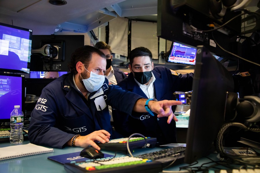 Traders work at the trading floor of the New York Stock Exchange (NYSE) in New York, the United States, on Jan. 18, 2022. (Xinhua/Michael Nagle)
