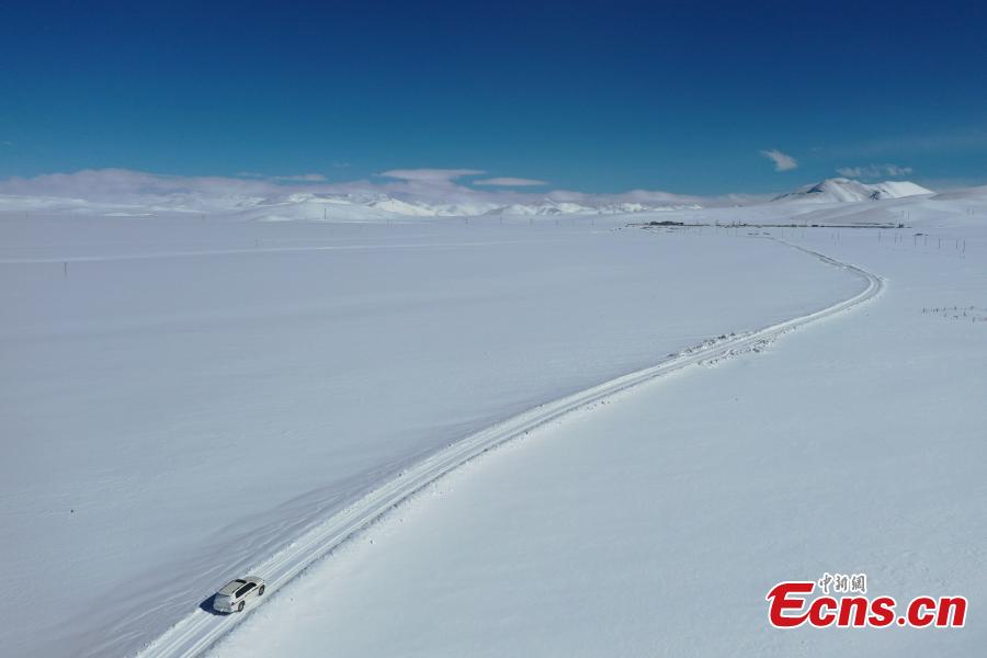 Photo taken on Jan. 25, 2022 shows the snow scenery of Lake Namtso, southwest China's Tibet Autonomous Region. (Photo/China News Service)