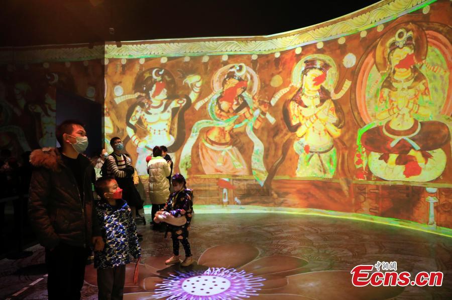 Visitors watch an immersive video at Chengdu Museum in Chengdu, southwest China's Sichuan province, Jan. 27, 2022. (Photo: China News Service/Wang Lei)