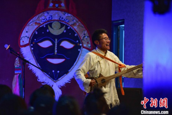 Nyazin Drakpa performs during a talk show. (Photo/Gongkar Lesong)