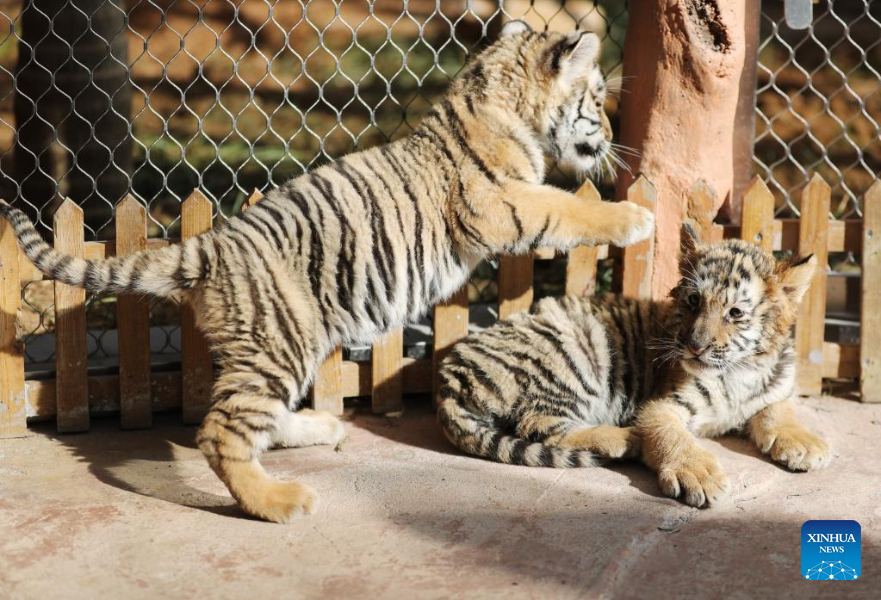Two female Siberian tiger cubs are seen at the Yunnan Safari Park in Kunming, southwest China's Yunnan Province, Jan. 29, 2022. While the Year of the Tiger approaches, tigers in zoos are in the spotlight and attract a lot of attention from visitors in China. (Photo by Liang Zhiqiang/Xinhua)