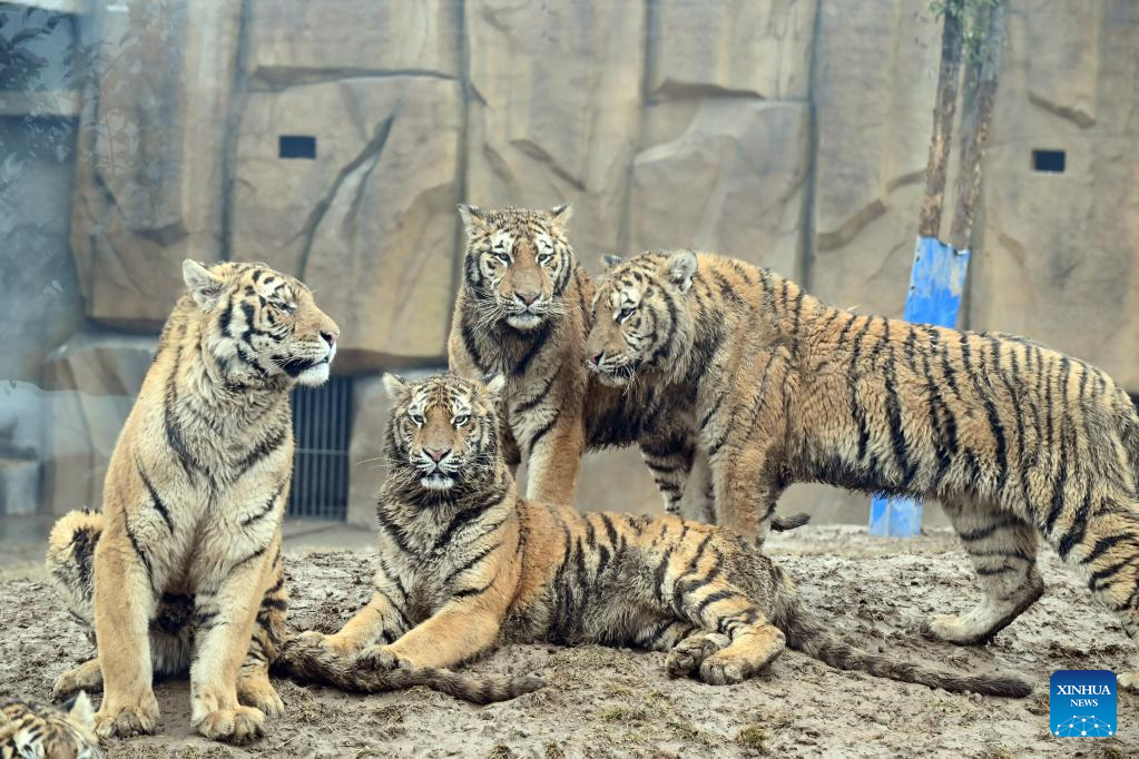 Siberian tigers are seen at a local forest safari park in Qinyang, central China's Henan Province, Jan. 29, 2022. While the Year of the Tiger approaches, tigers in zoos are in the spotlight and attract a lot of attention from visitors in China. (Photo by Yang Fan/Xinhua)