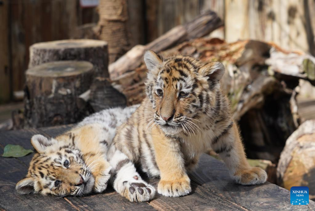 Two tiger cubs are seen at the Qingdao Forest Wildlife World in Qingdao, east China's Shandong Province, Jan. 29, 2022. While the Year of the Tiger approaches, tigers in zoos are in the spotlight and attract a lot of attention from visitors in China. (Photo by Zhang Jingang/Xinhua)