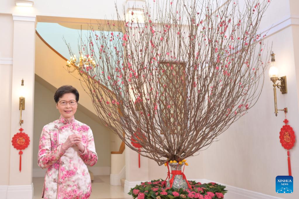 HONG KONG, Jan. 31 (Xinhua) -- Chief Executive of the Hong Kong Special Administrative Region (HKSAR) Carrie Lam on Monday delivered a Lunar New Year message, wishing all Hong Kong citizens a healthy, harmonious and auspicious Year of the Tiger.