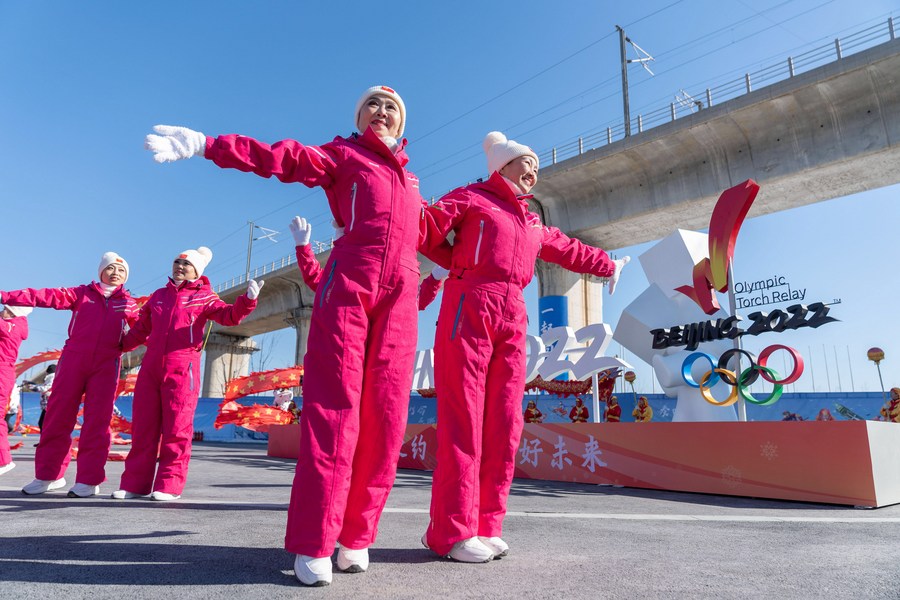 Performers are seen at the Winter Olympic Park in Beijing, capital of China, Feb. 2, 2022. (Xinhua/Cai Yang)