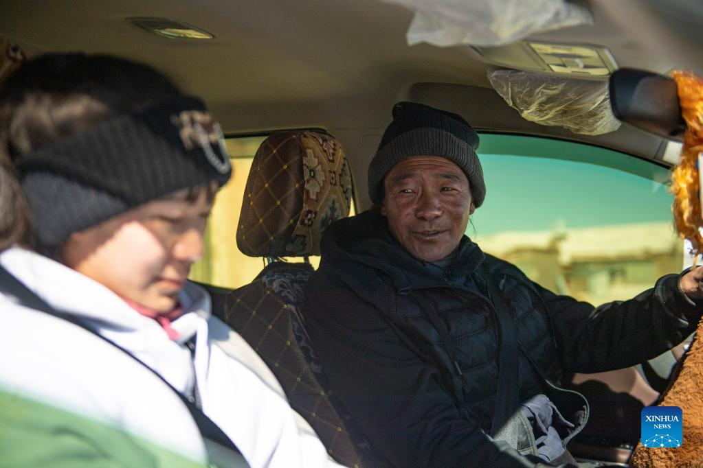 Tenzin Drolma's family welcomes her home in Gyaga Village of Damxung County, southwest China's Tibet Autonomous Region, Jan. 18, 2022. Tenzin Drolma, 21, was born on the grassland near Lake Namtso in Tibet. In 2020, she was admitted to Jiangsu Food and Pharmaceutical Science College in east China's Jiangsu Province as a Chinese pharmacy major student. The college life in the outside world is fresh to Drolma. She met many new classmates and made many friends. When winter vacation came, Drolma returned to her beloved home. "I leave my hometown in order to come back being a better person," she said. "I hope that when I graduate from college, I can help my family live a better life and I can be a useful person to my hometown and people here." (Xinhua/Sun Ruibo)