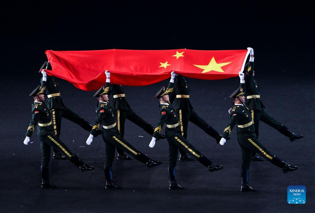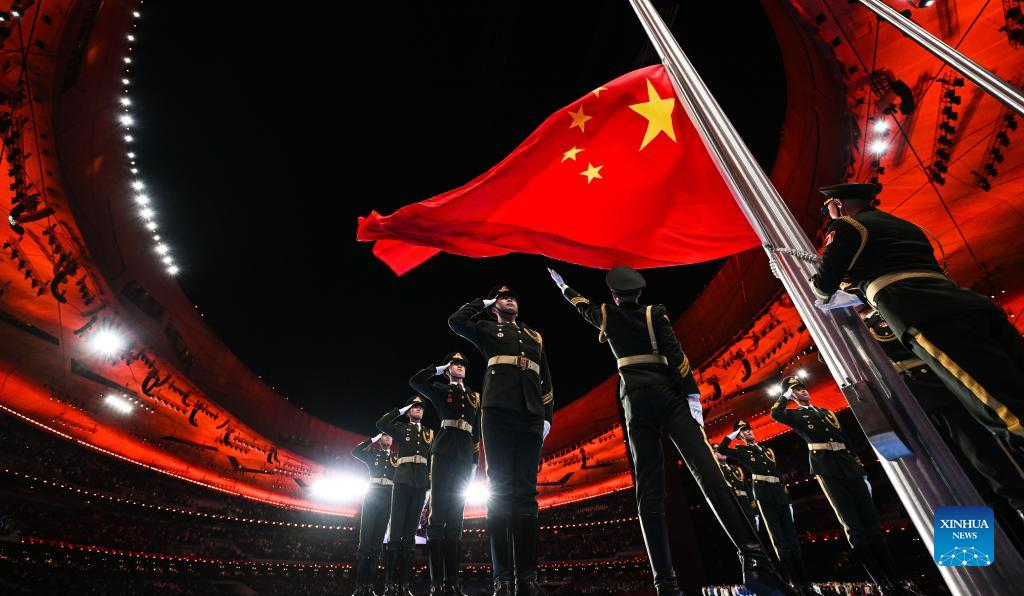 The Chinese national flag is raised during the opening ceremony of the Beijing 2022 Olympic Winter Games at the National Stadium in Beijing, capital of China, Feb. 4, 2022. (Xinhua/Li Ziheng)