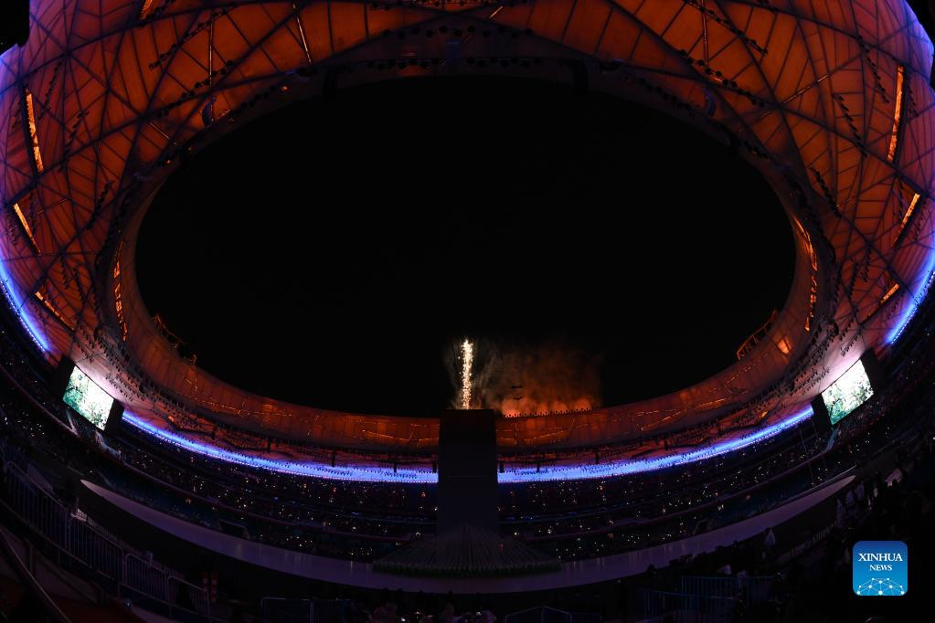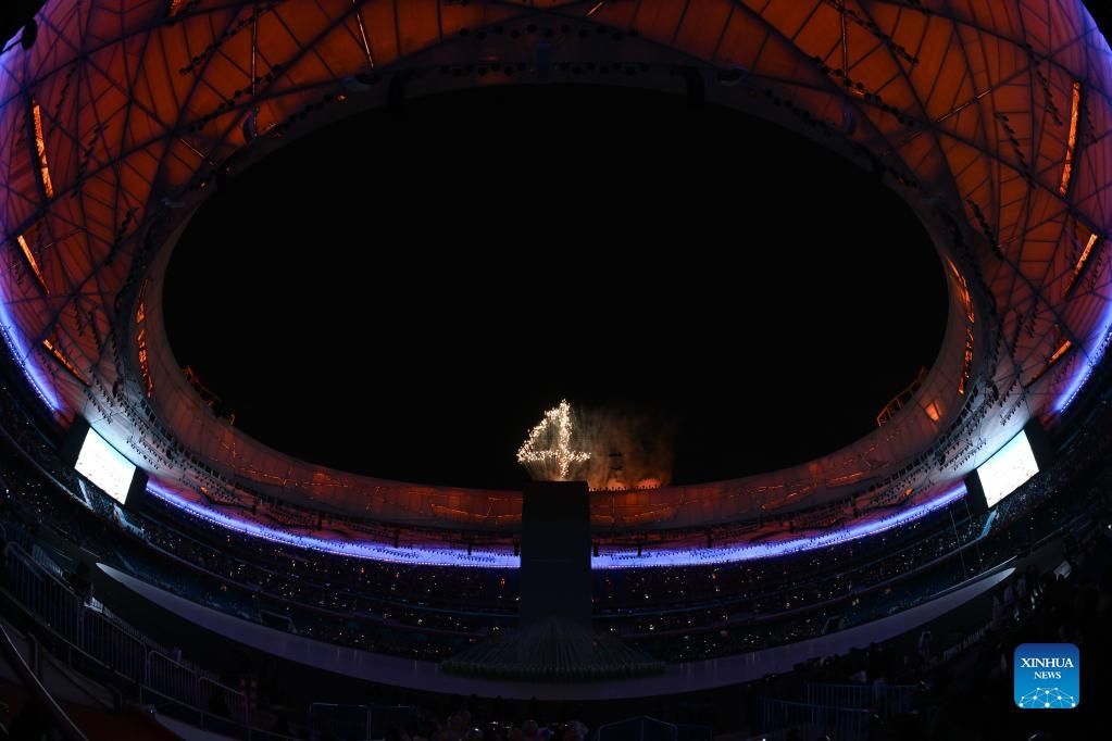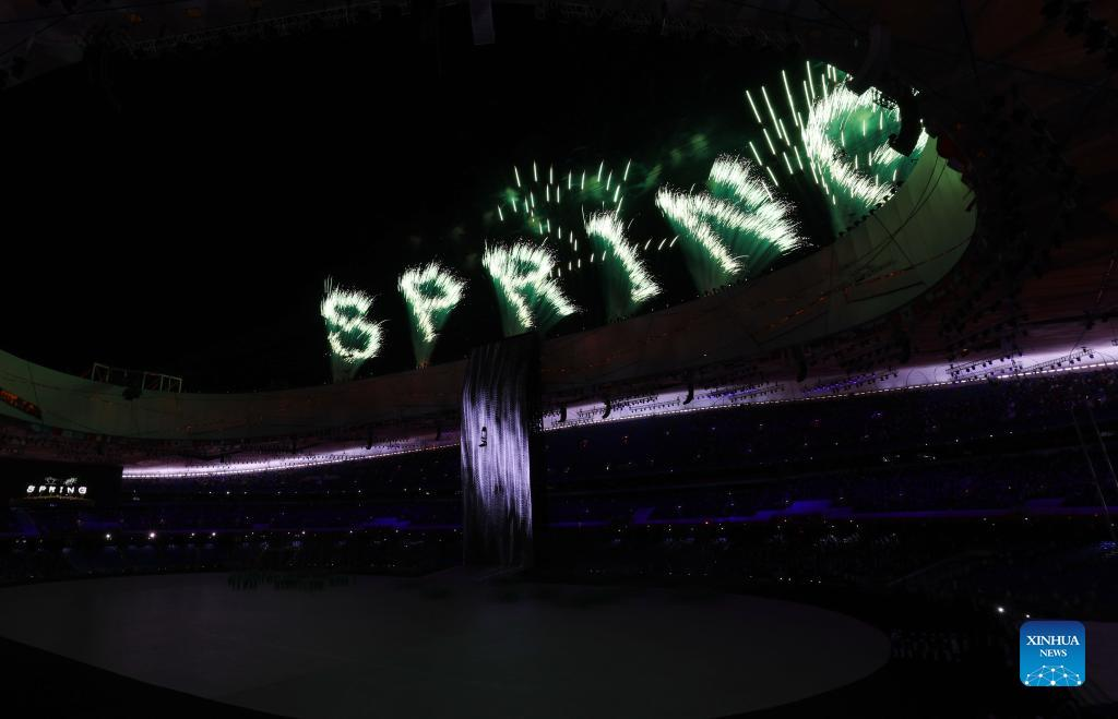 Fireworks explode during the opening ceremony of the Beijing 2022 Olympic Winter Games at the National Stadium in Beijing, capital of China, Feb. 4, 2022. (Xinhua/Pang Xinglei)