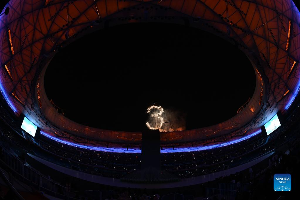Firework shows the countdown to the opening ceremony of the Beijing 2022 Olympic Winter Games at the National Stadium in Beijing, capital of China. (Xinhua/Li Ga)