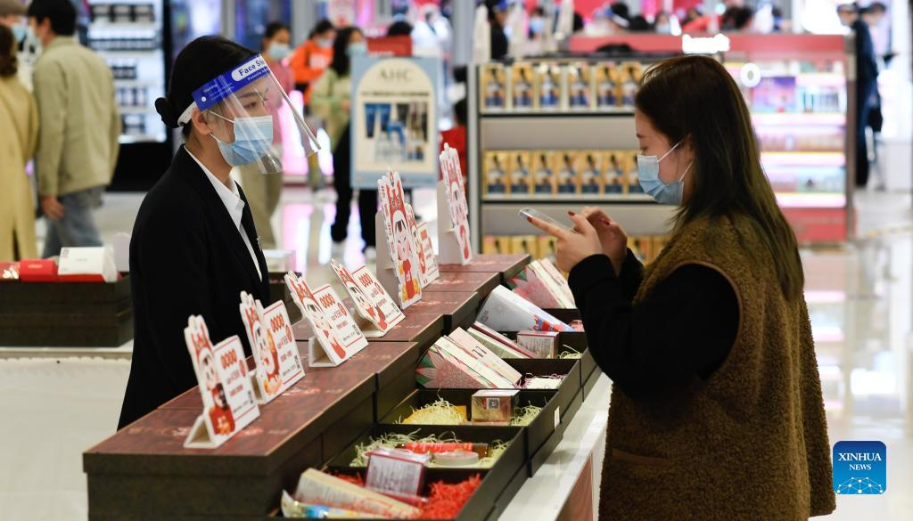 Customers select products in a duty-free shop in Haikou, capital of south China's Hainan Province, Feb. 3, 2022. (Xinhua/Yang Guanyu)