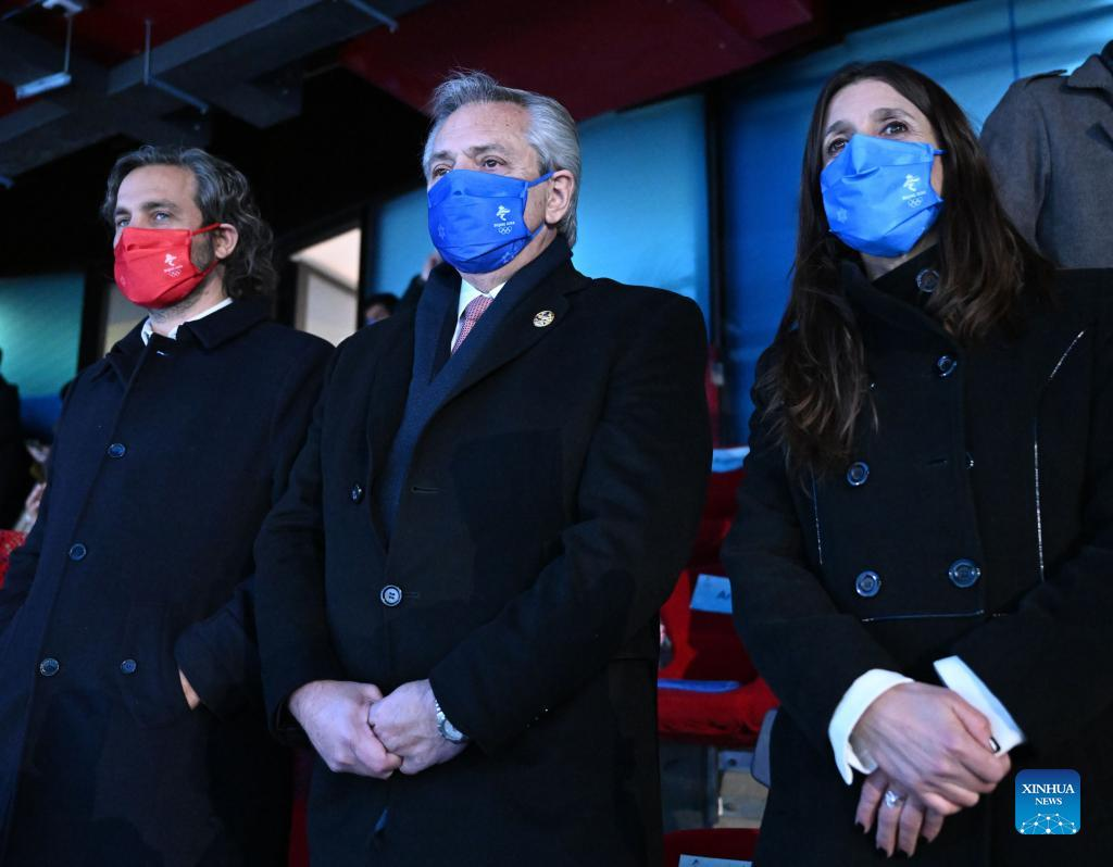 Argentine President Alberto Fernandez (C) looks on during the opening ceremony of the 24th Olympic Winter Games at the National Stadium in Beijing, capital of China, Feb. 4, 2022. (Xinhua/Ma Ning)