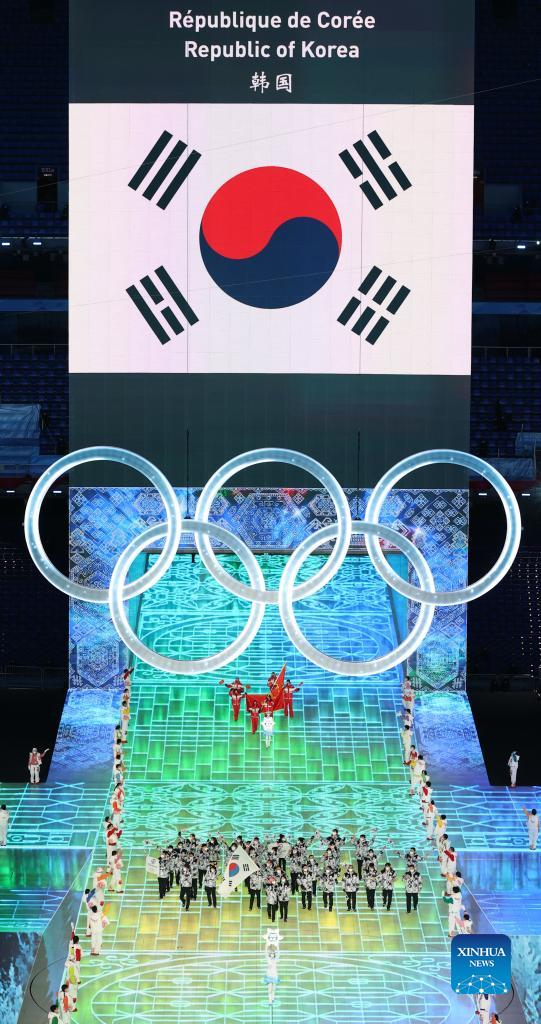 The Olympic delegation of the Republic of Korea parade into the National Stadium during the opening ceremony of the Beijing 2022 Olympic Winter Games in Beijing, capital of China, Feb. 4, 2022. (Xinhua/Yang Lei)