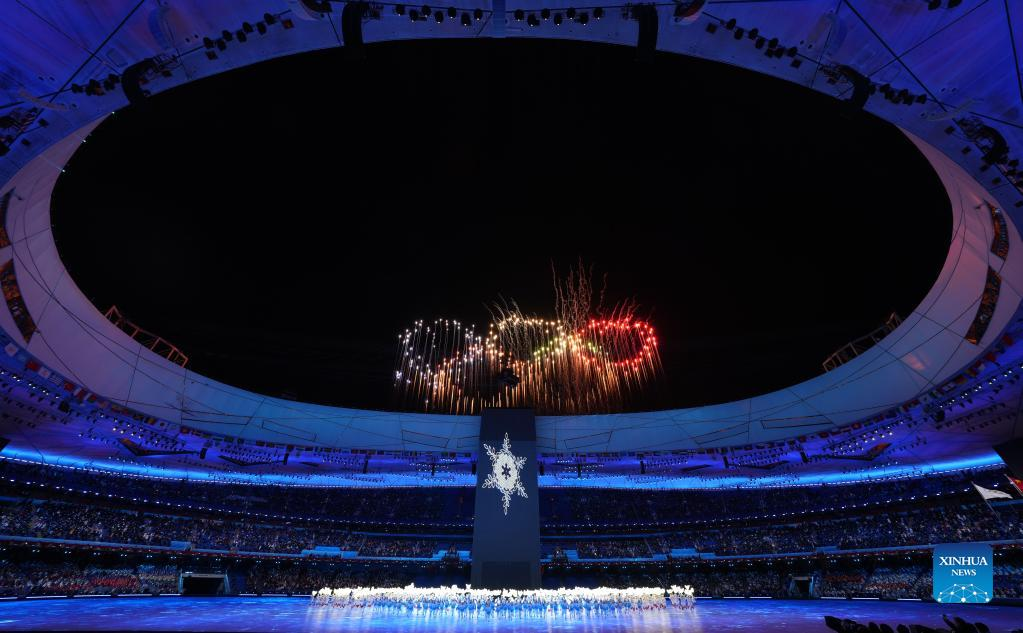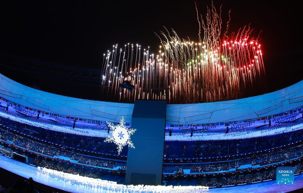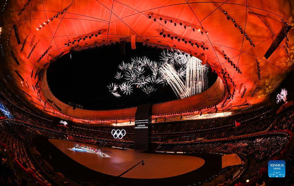 Fireworks illuminate the night sky during the opening ceremony of the Beijing 2022 Olympic Winter Games at the National Stadium in Beijing, capital of China, Feb. 4, 2022. (Xinhua/Ju Huanzong)