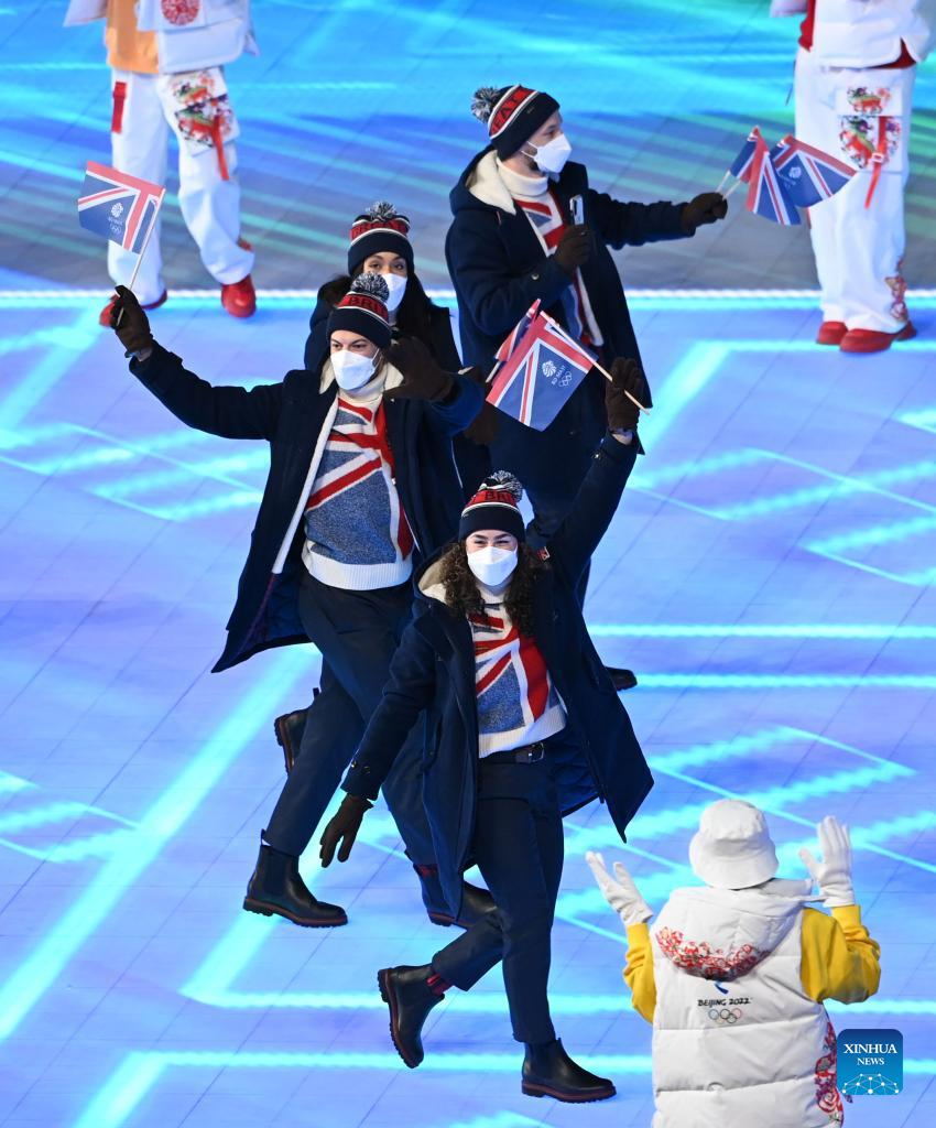 The Olympic delegation of Great Britain parade into the National Stadium during the opening ceremony of the Beijing 2022 Olympic Winter Games in Beijing, capital of China, Feb. 4, 2022. (Xinhua/Huang Zongzhi)