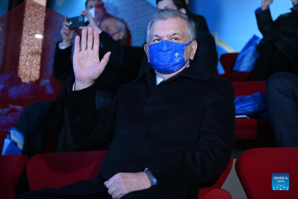 Uzbek President Shavkat Mirziyoyev waves during the opening ceremony of the 24th Olympic Winter Games at the National Stadium in Beijing, capital of China, Feb. 4, 2022. (Xinhua/Ma Ning)
