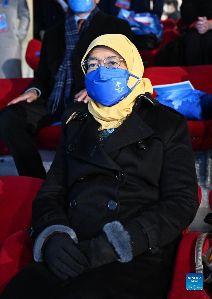 Singaporean President Halimah Yacob looks on during the opening ceremony of the 24th Olympic Winter Games at the National Stadium in Beijing, capital of China, Feb. 4, 2022. (Xinhua/Ma Ning)
