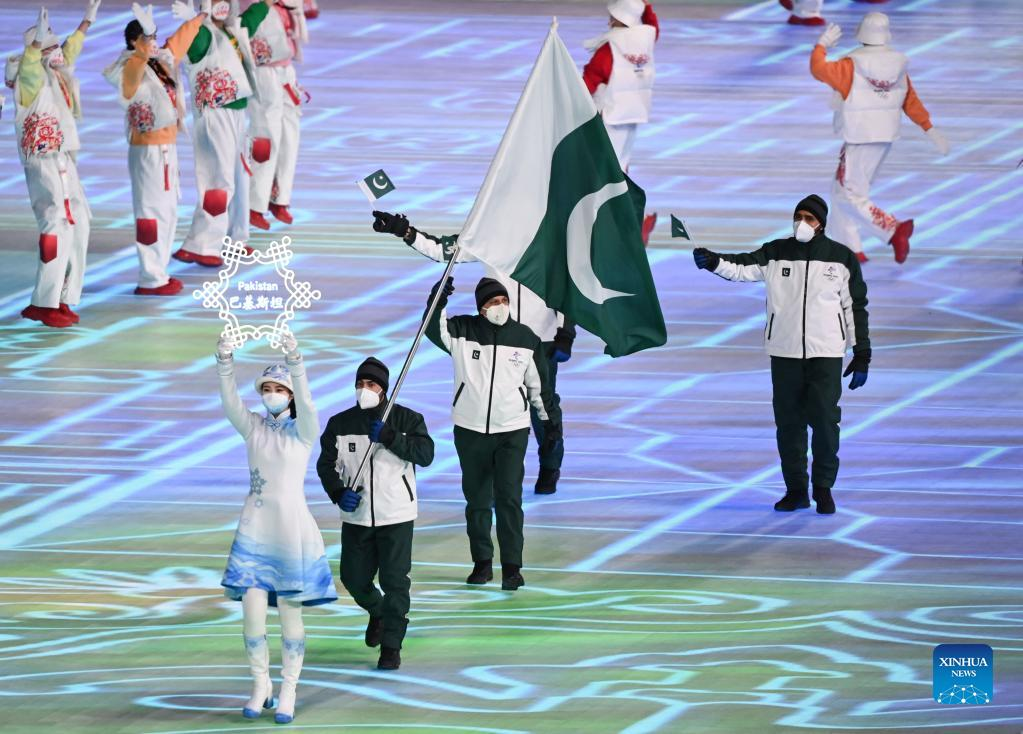 The Olympic delegation of Pakistan parade into the National Stadium during the opening ceremony of the Beijing 2022 Olympic Winter Games in Beijing, capital of China, Feb. 4, 2022. (Xinhua/Yang Lei)