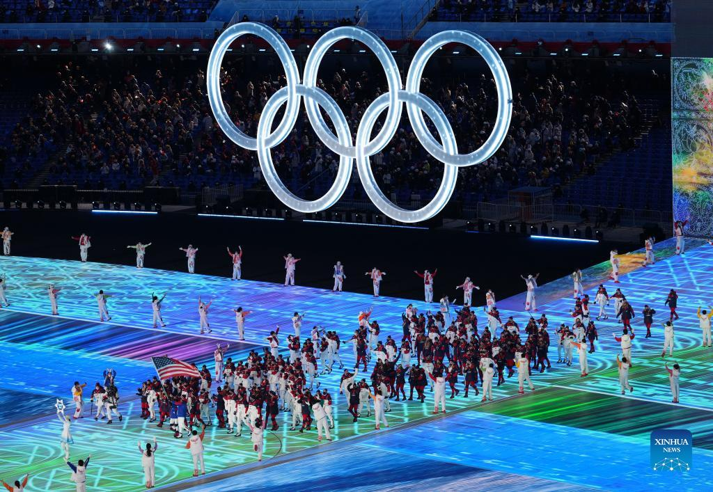 The Olympic delegation of the United States parade into the National Stadium during the opening ceremony of the Beijing 2022 Olympic Winter Games in Beijing, capital of China, Feb. 4, 2022. (Xinhua/Huang Zongzhi)