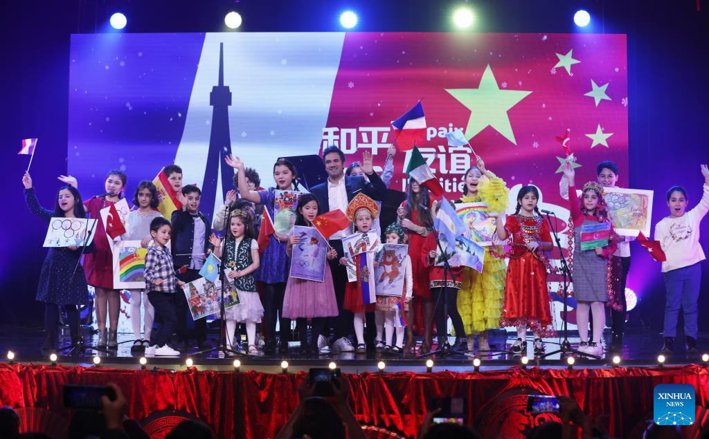 Performed by some 100 Chinese and foreign artists, the programs of the 110-minute concert "Peace, Friendship, Love" were recorded separately in China and France. (Xinhua/Gao Jing)