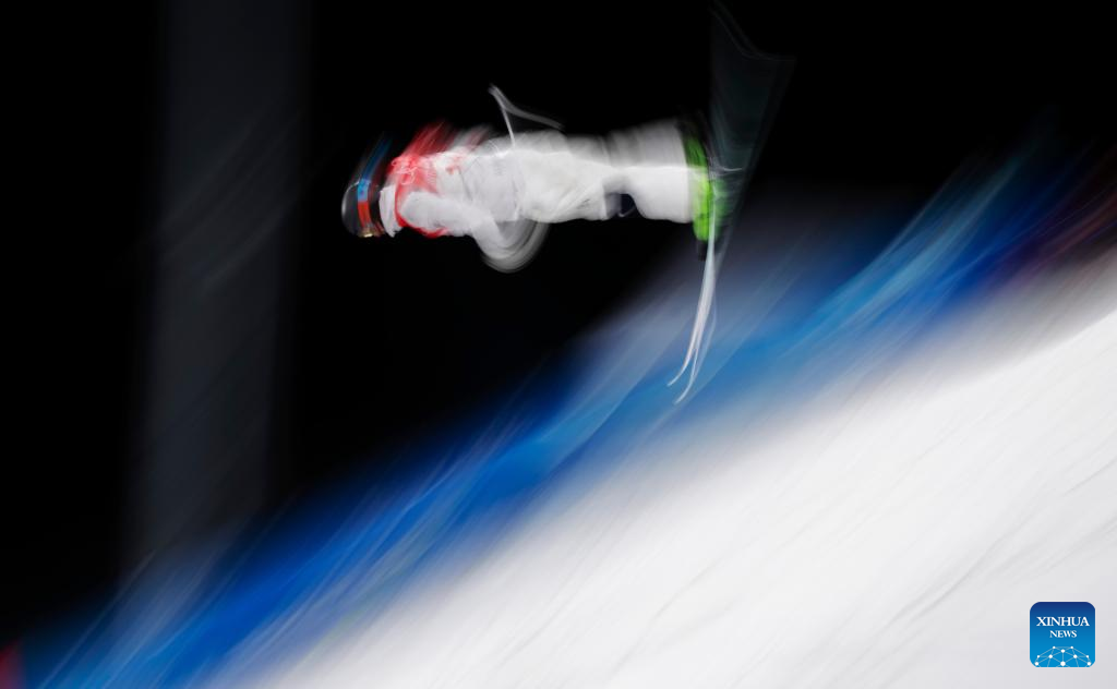Cole McDonald of the United States warms up before Free Style Skiing Men's Moguls Final at Genting Snow Park in Zhangjiakou, north China's Hebei Province, Feb. 5, 2022. (Xinhua/Fei Maohua)