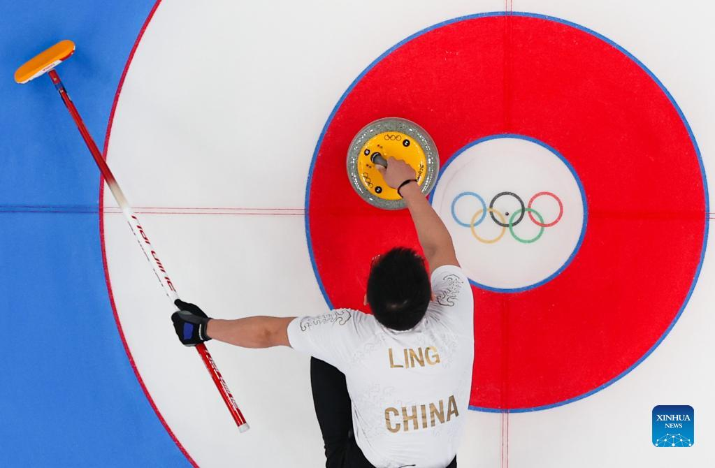 Highlights of curling mixed doubles round robin event on Feb. 6